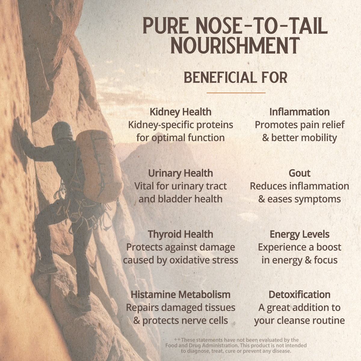 Our freeze-dried beef kidney health supplement offers nourishment that only whole foods can provide to promote urinary health and cleansing.