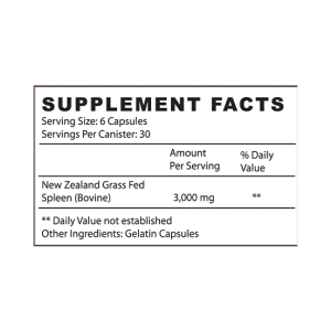 Take six capsules daily or as directed by a healthcare professional; consult with a physician before taking any new supplements and note that spleen supplements should not be consumed by those that may be sensitive to it.