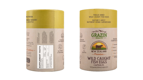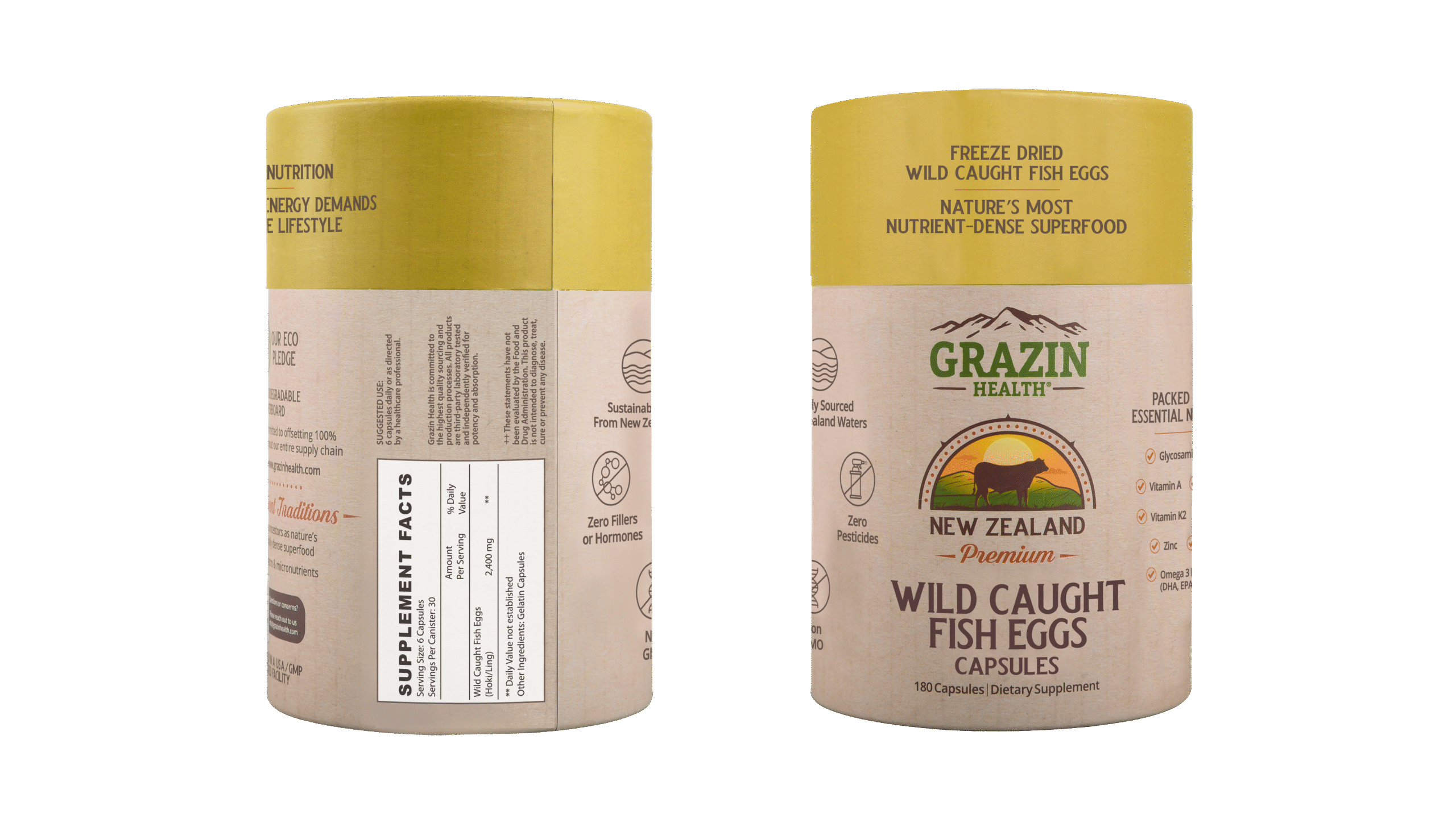 - Omega-Rich Marine Nutrition Grazin Health Fish Eggs Capsules deliver 3000mg per serving of nutrient-dense fish roe, naturally rich in Omega-3, DHA & EPA. A premium source of essential fatty acids to support daily wellness, vitality, and balanced nutrition.